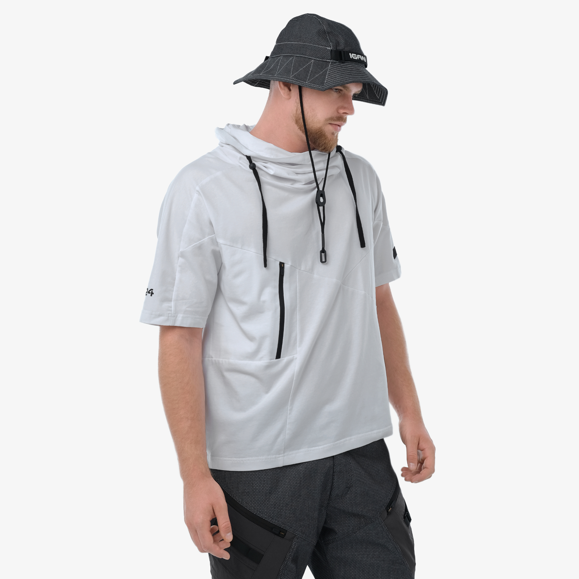 Горловина с высоким воротником-труба,стягивающийся х/б тесьмой с регуляторами.