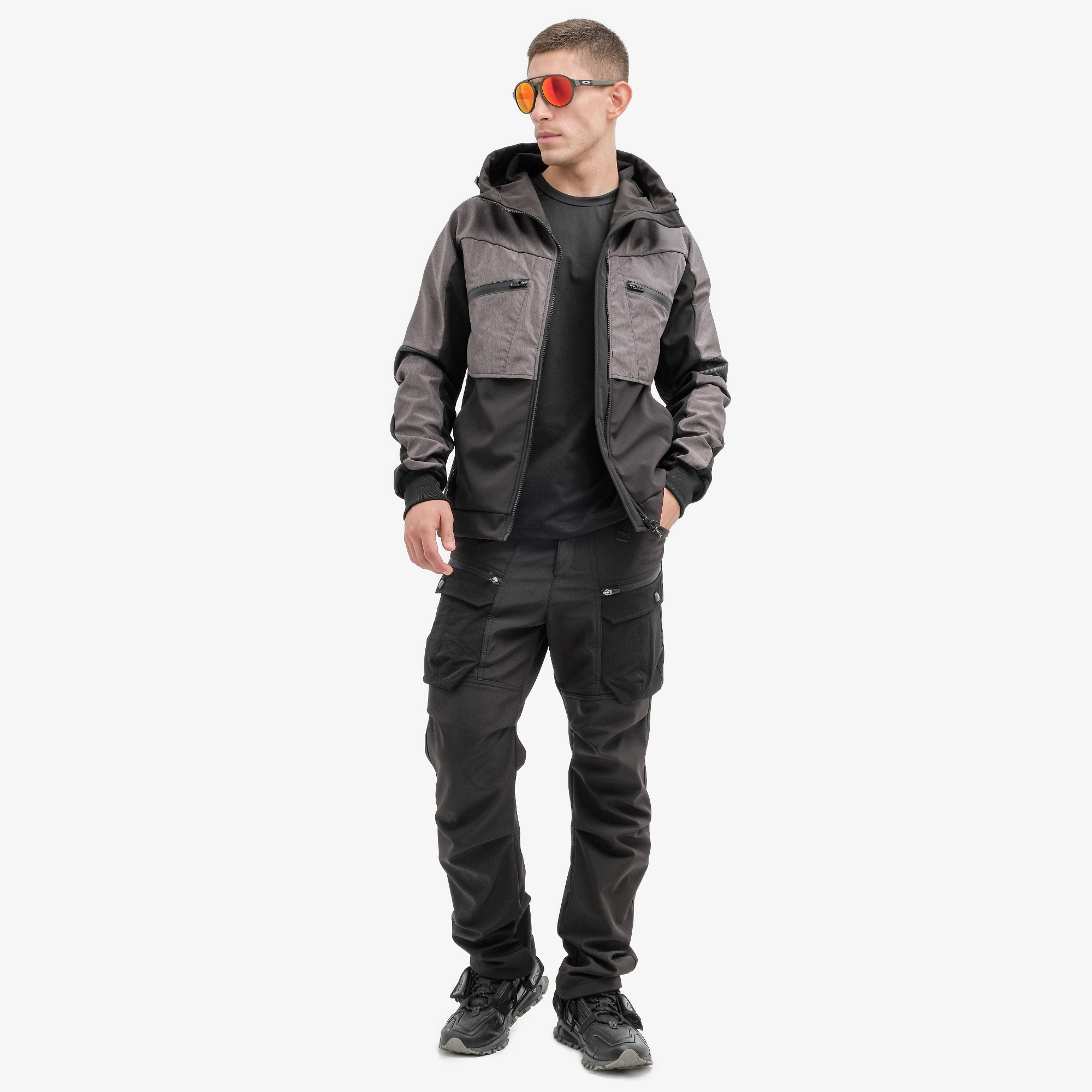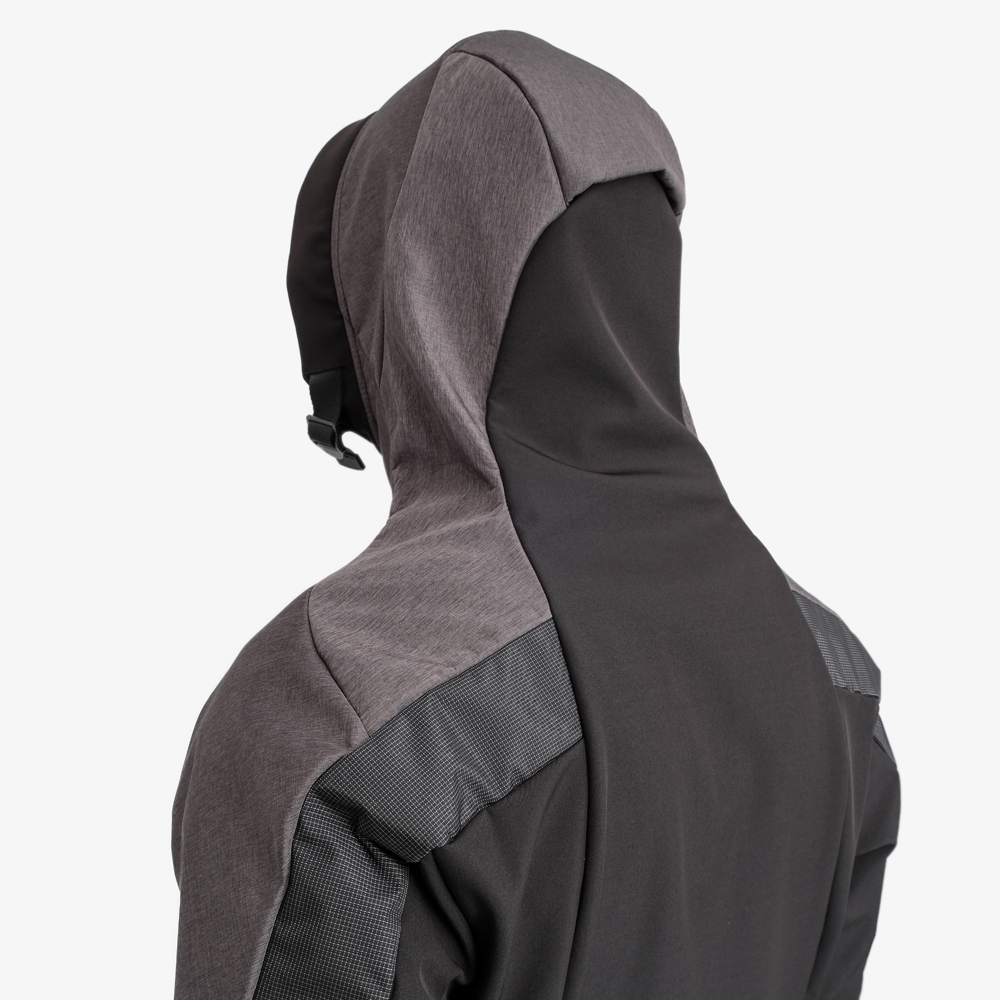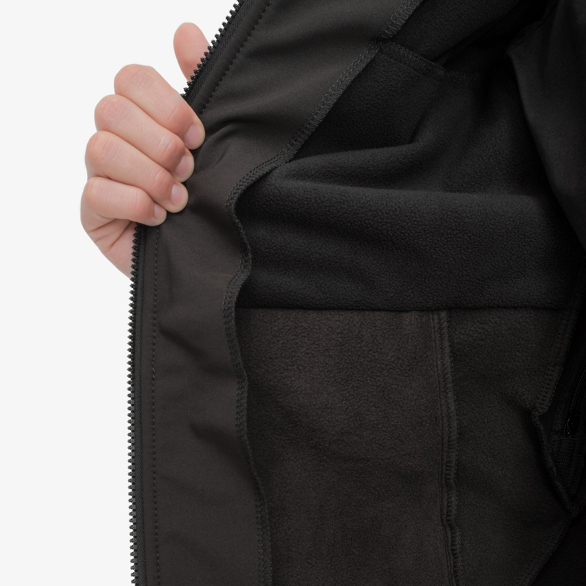 В изделии используется трехслойный мембранный SoftShell. Ткань обладает оптимальными эксплуатационными характеристиками: отведение влаги, вентиляция, сохранение тепла, защита от умеренного ветра и кратковременных моросящих осадков.
