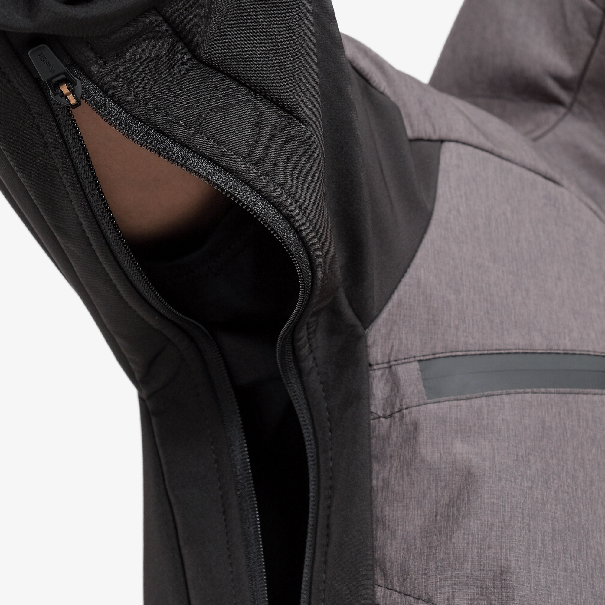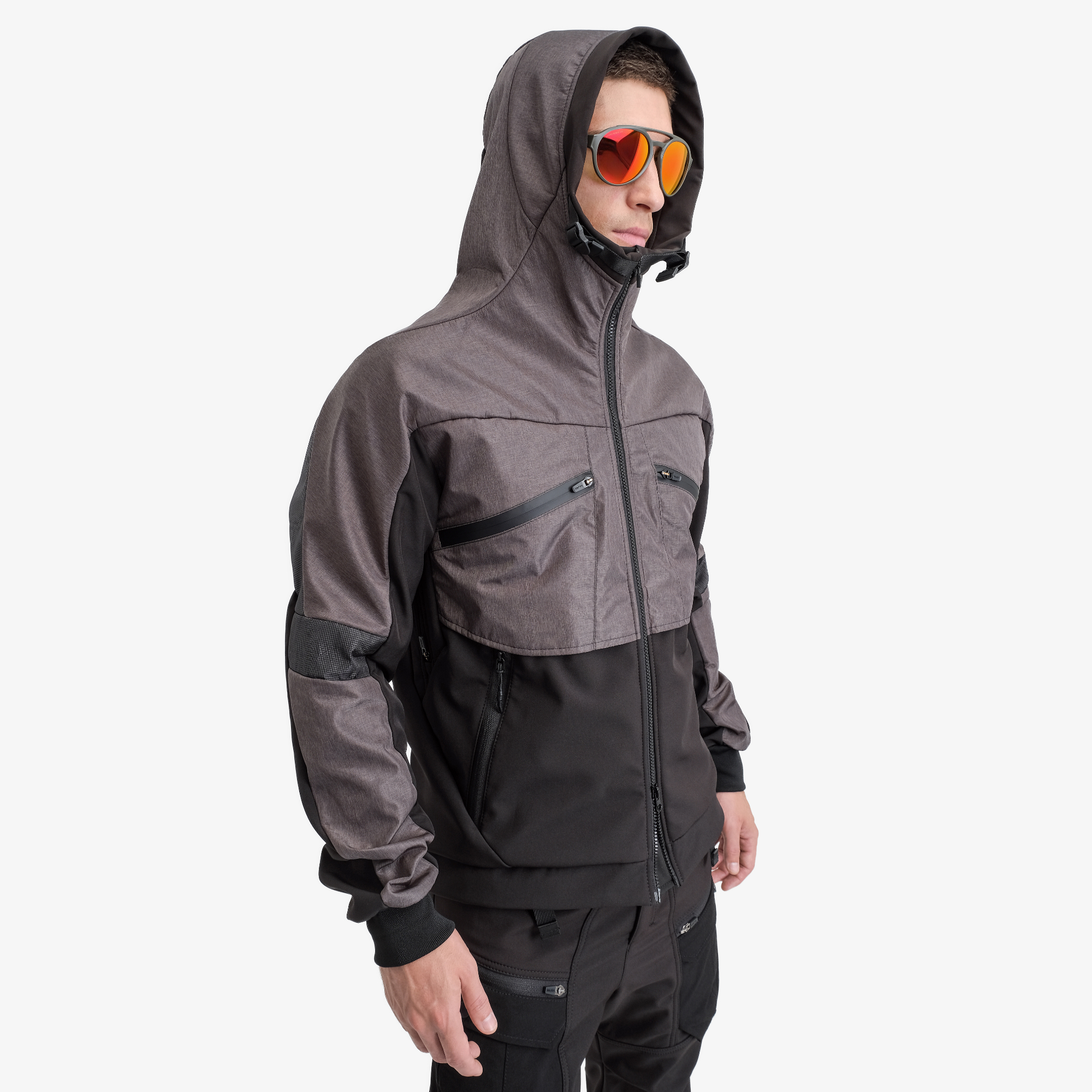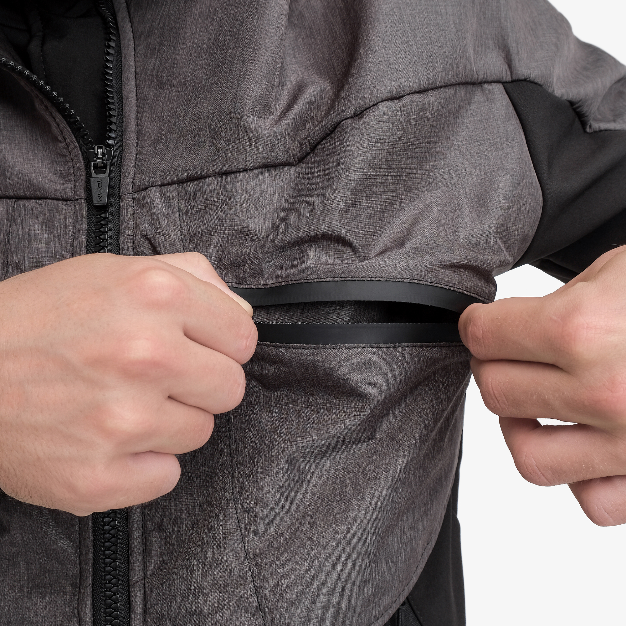 В изделии используется трехслойный мембранный SoftShell. Ткань обладает оптимальными эксплуатационными характеристиками: отведение влаги, вентиляция, сохранение тепла, защита от умеренного ветра и кратковременных моросящих осадков.