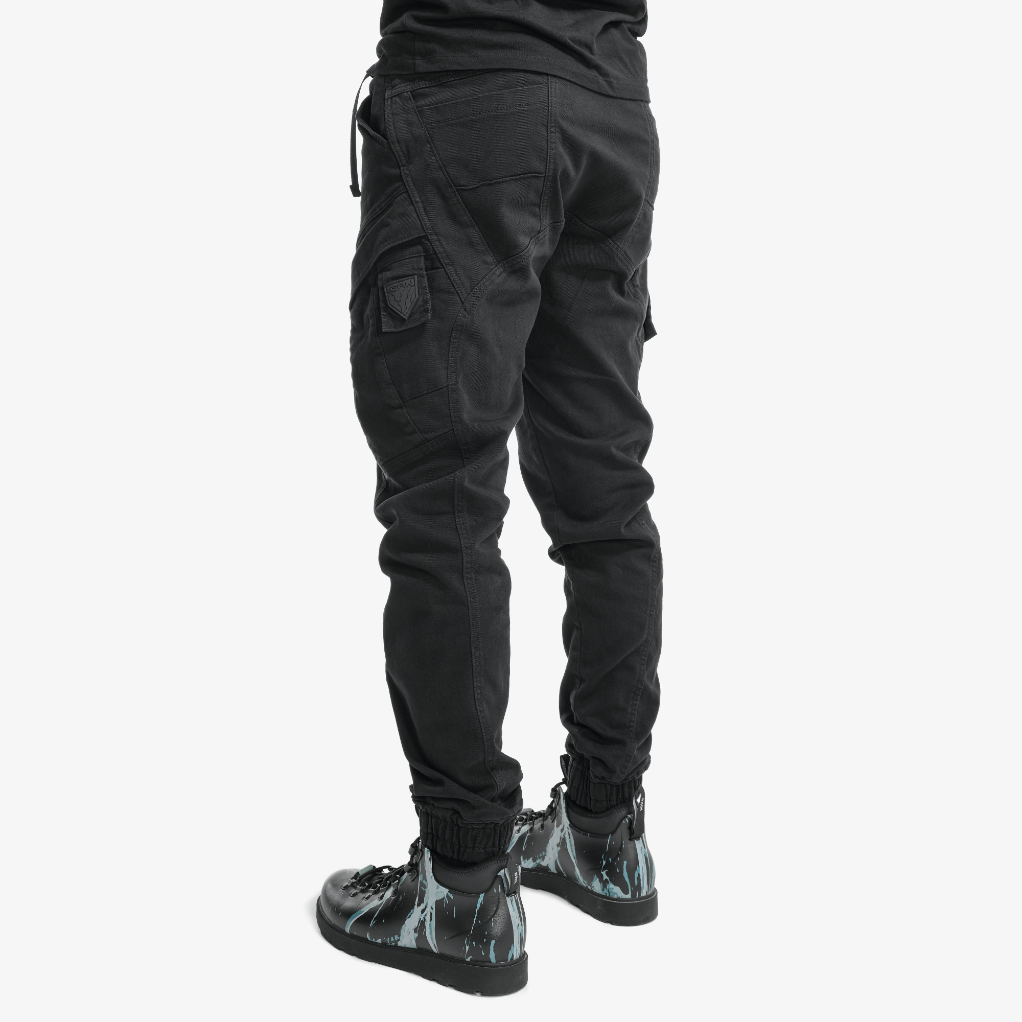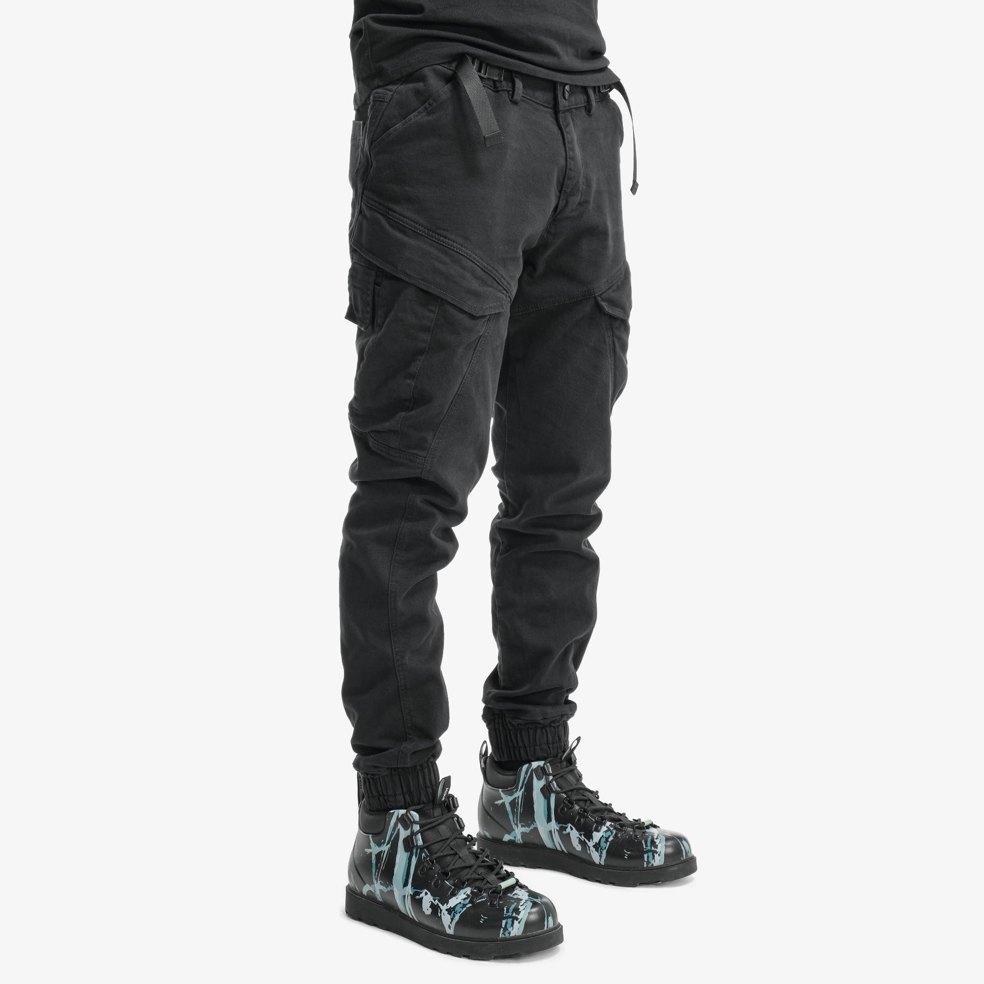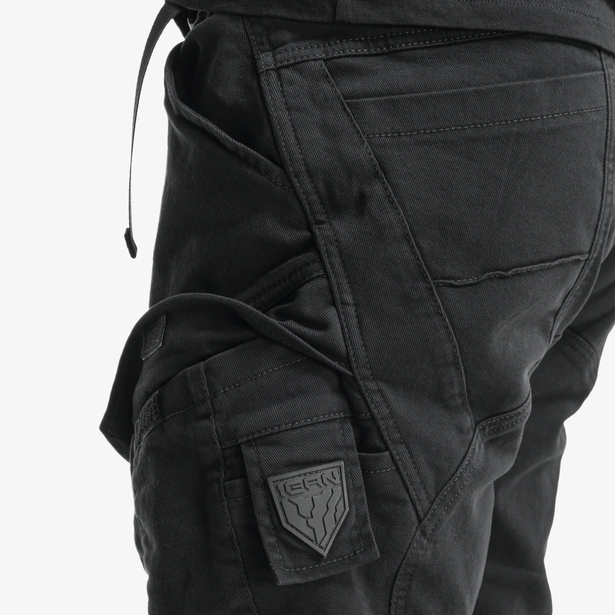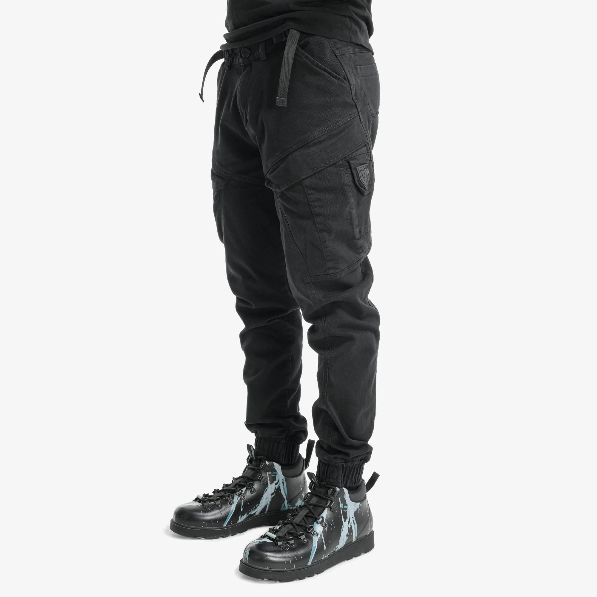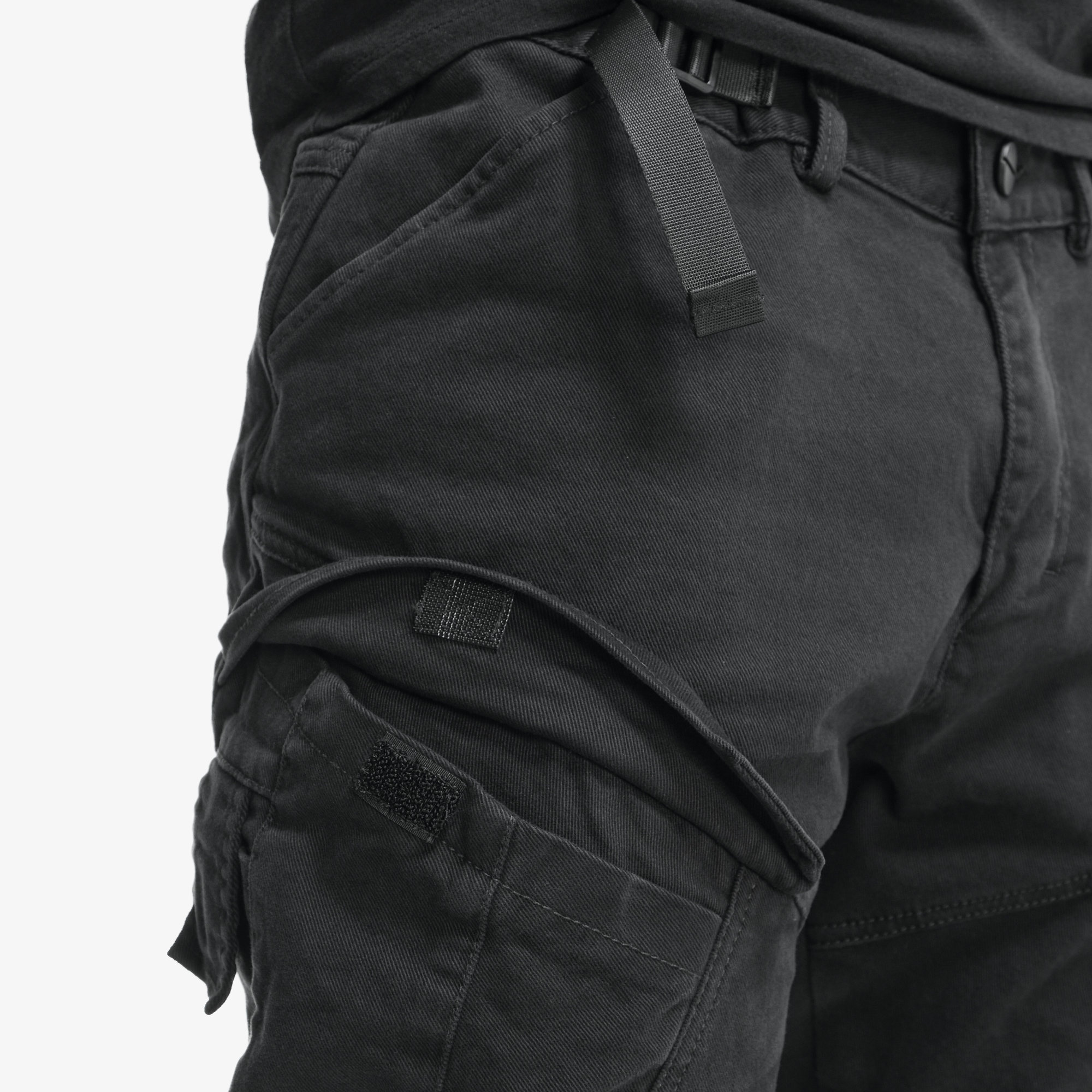 По бокам на уровне бедра по два больших объемных кармана с клапанами на липучке, дополненные небольшими накладными кармашками.