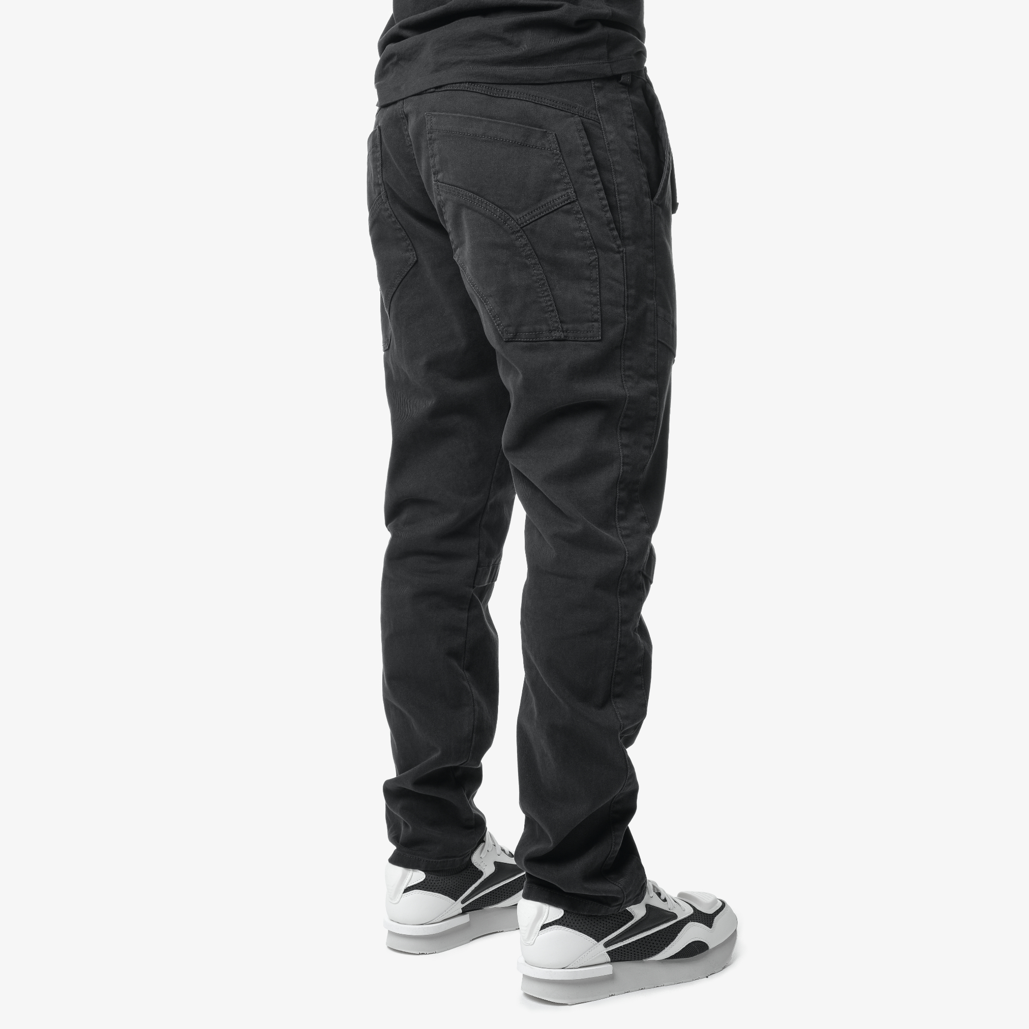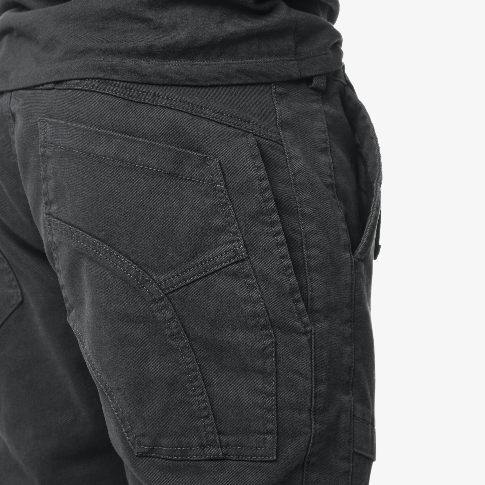 На передних половинках брюк по бокам расположены два глубоких внутренних кармана с косым входом.