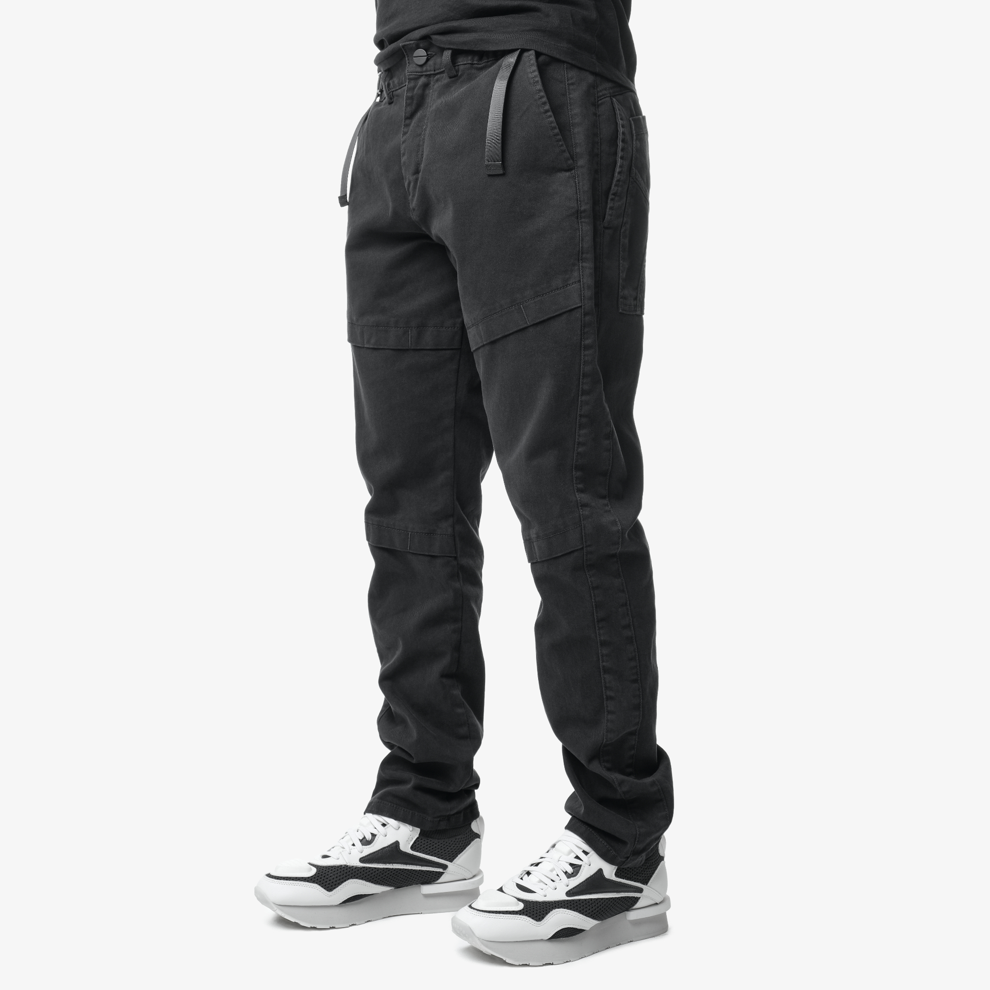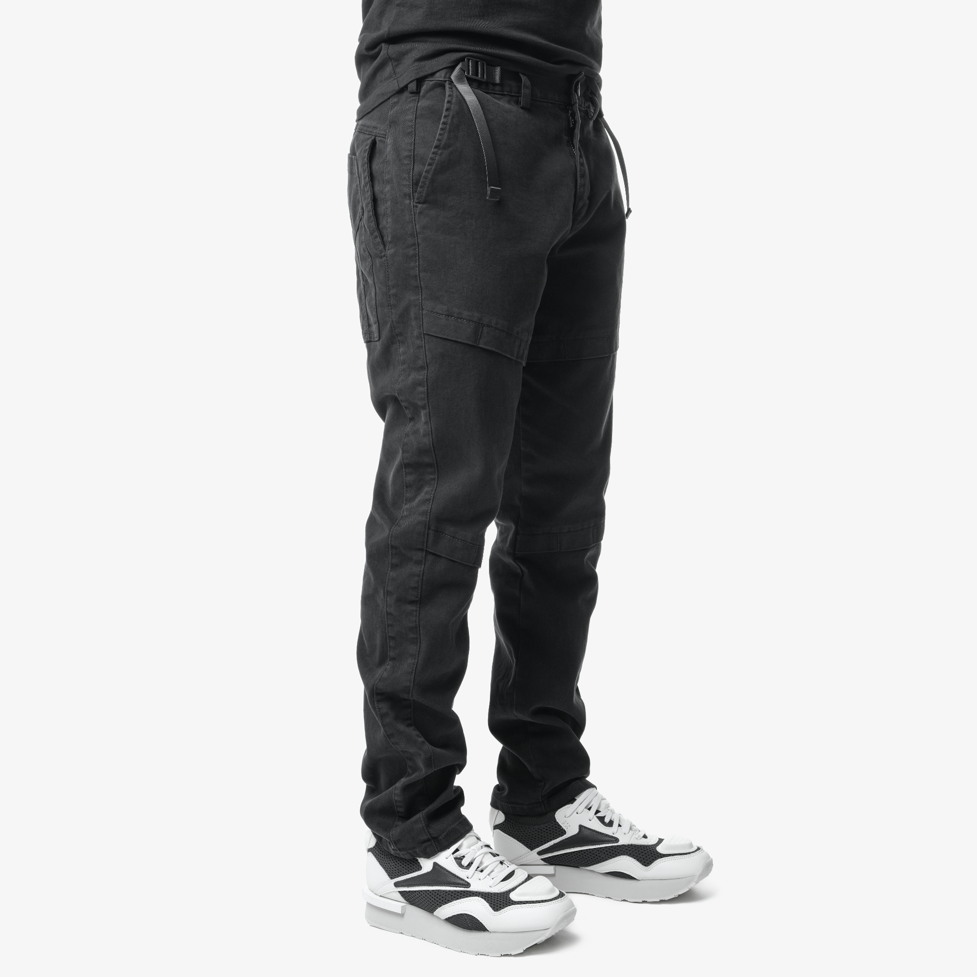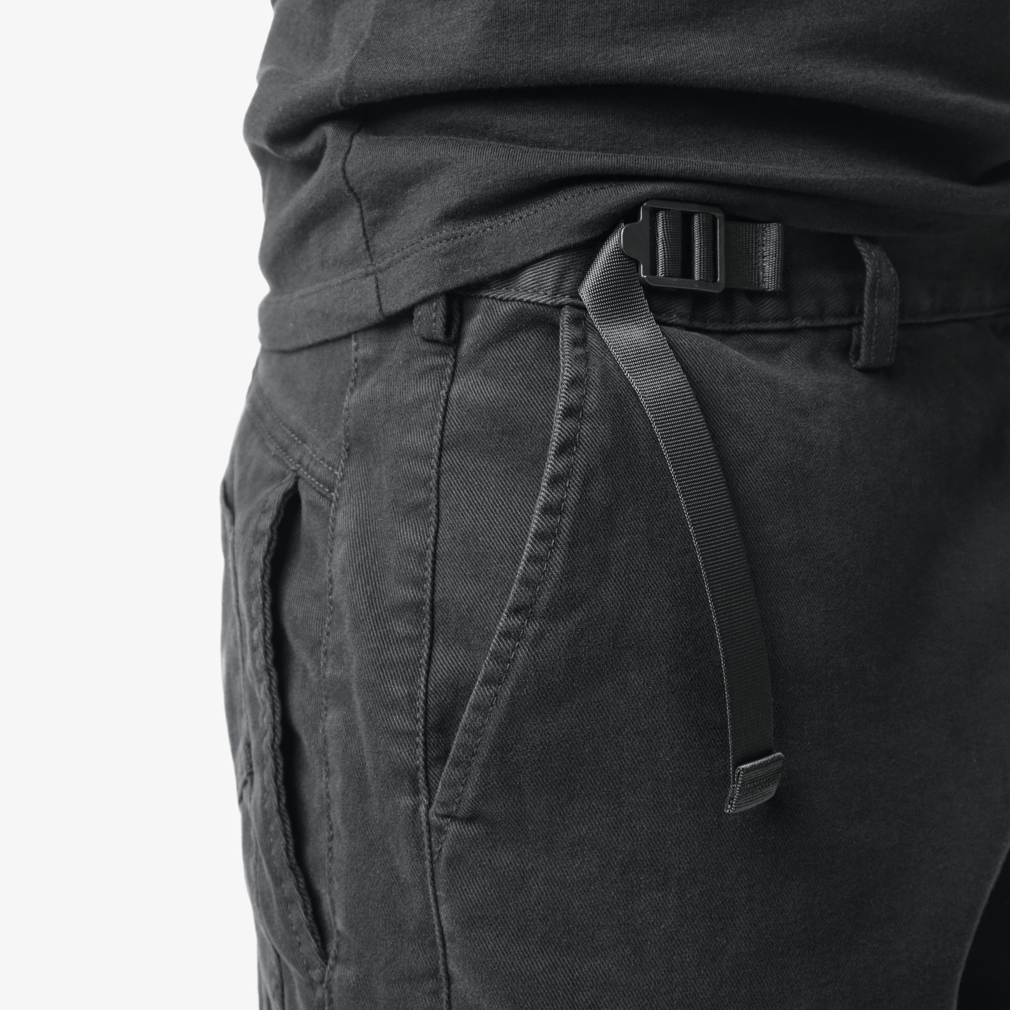 Пояс со шлевками застегивается на петлю-пуговицу и регулируется по объему при помощи стропы с регуляторами.